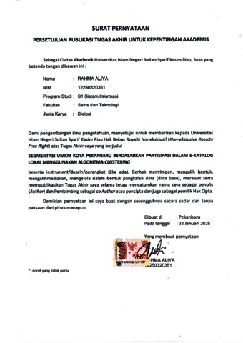 SURAT PERNYATAAN SERAH SIMPAN KARYA RAHMA ALIYA - RAHMA ALIYA SISTEM INFORMASI.pdf - Published Version Download (229kB) | Preview |