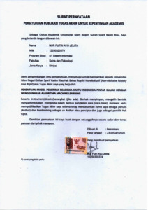 NUR FUTRI AYU JELITA, - (2026) PENENTUAN MODEL PENERIMA BEASISWA KARTU INDONESIA PINTAR KULIAH DENGAN MENGGUNAKAN ALGORITMA MACHINE LEARNING. Skripsi thesis, Universitas Islam Negeri Sultan Syarif Kasim Riau.