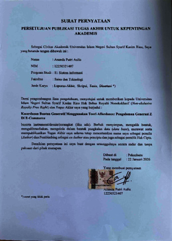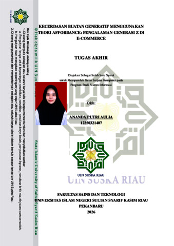 ANANDA PUTRI AULIA, - (2026) KECERDASAN BUATAN GENERATIF MENGGUNAKAN TEORI AFFORDANCE: PENGALAMAN GENERASI Z DI E-COMMERCE. Skripsi thesis, UNIVERSITAS ISLAM NEGERI SULTAN SYARIF KASIM RIAU.
