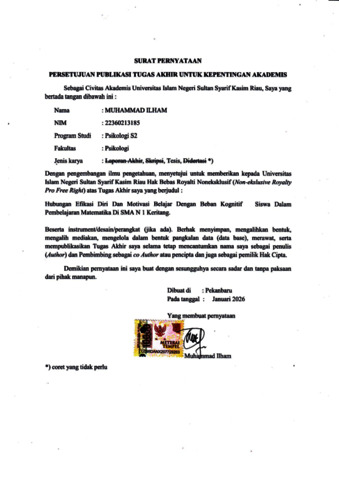 MUHAMMAD ILHAM, - (2026) HUBUNGAN EFIKASI DIRI DAN MOTIVASI BELAJAR DENGAN BEBAN KOGNITIF SISWA DALAM PEMBELAJARAN MATEMATIKA DI SMA N 1 KERITANG. Thesis thesis, UNIVERSITAS ISLAM NEGERI SULTAN SYARIF KASIM RIAU.