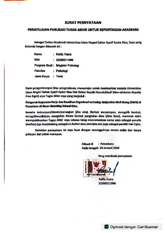 REFILA YUSRA, - (2026) PENGARUH KEPUASAN KERJA DAN KEADILAN ORGANISASI TERHADAP SUBJECTIVE WELL-BEING_(SWB) PENDIDIK DAN TENAGA KEPENDIDIKAN PESANTREN AL-IHSAN BOARDING SCHOOL RIAU. Thesis thesis, UNIVERSITAS ISLAM NEGERI SULTAN SYARIF KASIM RIAU.