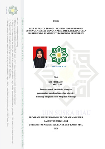 SRI NOVIANTI, - (2026) SELF EFFICACY SEBAGAIMODERATOR HUBUNGAN DUKUNGAN SOSIAL DENGAN PENGAMBILAN KEPUTUSAN KARIER PADA SANTRIWATI DI PONDOK PESANTREN. Thesis thesis, UNIVERSITAS ISLAM NEGERI SULTAN SYARIF KASIM RIAU.