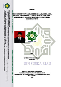 ZAINI AFWAN HASIBUAN, - (2026) NILAI KECERNAAN BAHAN KERING, BAHAN ORGANIK, PROTEIN KASAR PADA KAMBING JAWARANDU YANG DIBERI PAKAN SILASE SORGUM DAN INDIGOFERA SECARA IN VIVO. Skripsi thesis, UNIVERSITAS ISLAM NEGERI SULTAN SYARIF KASIM RIAU.