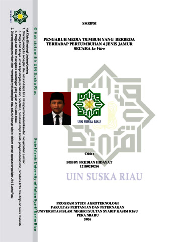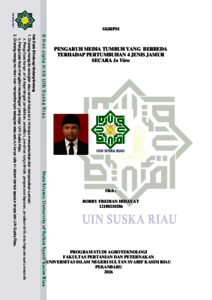 BOBBY FREDIAN HIDAYAT, - (2026) PENGARUH MEDIA TUMBUH YANG BERBEDA TERHADAP PERTUMBUHAN 4 JENIS JAMUR SECARA In Vitro. Skripsi thesis, UNIVERSITAS ISLAM NEGERI SULTAN SYARIF KASIM RIAU.