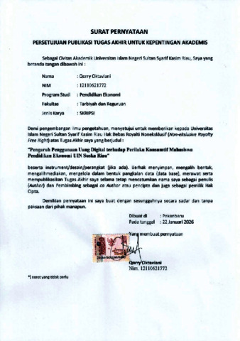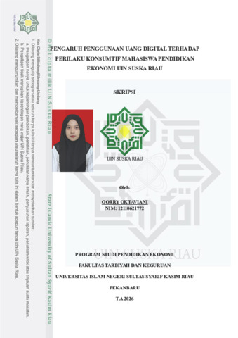 QORRY OKTAVIANI, - (2026) PENGARUH PENGGUNAAN UANG DIGITAL TERHADAP PERILAKU KONSUMTIF MAHASISWA PENDIDIKAN EKONOMI UIN SUSKA RIAU. Skripsi thesis, Universitas Islam Negeri Sultan Syarif Kasim Riau.