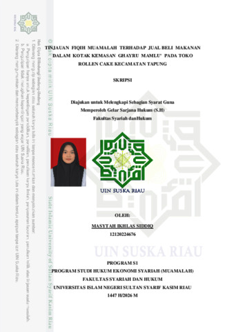 ABSTRAK Mastah Ikhlas Siddiq,(2025): Tinjauan Fiqih Muamalah terhadap Makanan dalam Kotak Kemasan Tidak Terisi Penuh pada Toko Rollen Cake Kecamatan Tapung Penulisan skripsi ini dilatarbelakangi oleh peraktik jual beli makanan dalam kotak kemasan yang tidak terisi penuh pada toko rollen cake Kecamatan Tapung. Hal ini di sebabkan oleh pengunaan sekat atau penyangga didalam toples kue, dan toples tersebut di tutupi dengan stiker logo toko yang hampir menutupi seluruh bagian tutup toples sehingga sekat atau penganggah yang di letakan di dalam toples tidak terlihat. Hal ini mengindikasikan adanya perbuatan jual beli yang di larang yang di lakukan oleh toko rollen cake pada objek jual belinya. Permasalahan dalam skripsi ini adalah bagaimana peraktik jual beli makanan dalam kotak kemasan yang tidak terisi penuh dan bagaimana tinjauan fiqih muamalah terhadap jual beli makanan dalam kotak kemasan tidak terisi penuh. Penelitian ini bertujuan untuk meninjau praktik jual beli makanan dalam kotak kemasan tidak terisi penuh pada toko Rollen Cake Kecamatan Tapung, dari perspektif fiqih muamalah. Penelitian ini berbentuk penelitian lapangan dengan observasi, wawancara, dan dokumentasi yang dianalisa secara deskripktif kualitatif. ini mengkaji aspek hukum islam jual beli makanan dalam kotak kemasan, makanan ringan, proses transaksi, dan unsur tadlis yang terkandung di dalamnya. Hasil penelitian menunjukan bahwa peraktik jual beli makanan dalam kotak kemasan tidak terisi penuh di karenkan adanya pengunaan penyangga atau sekat ini pada dasar nya mubah (boleh) dan akad jual belinya sah namun untuk peraktik tadlis yang dilakukan penjual dengan menyalah gunakan manfaat dari penyangga atau sekat yang seharusnya untuk menguranggi jumlah kue yang ada di dalam toples, dan melakukan upaya menyebunyikan penyangah atau sekat itu kecacatan dengan menutup-nutupi tampilan dari luar toples mengunakan stiker logo toko sehingga tidak terlihat adanya kecacatan, Perilaku yang di lakukan penjual sangat mengambarkan praktik tadlis dalam jual beli yang mana hal ini dapat merugikan bagi pembeli karna tidak terpenuhinya prinsip kerelaan dan keadilan dalam jual beli, maka praktik ini di larang karna menyebabkan kerugian bagi pembeli. Kata Kunci: Jual beli, makan kemasan, sekat/penyangga, tadlis, fiqih muamalah