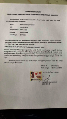 DIMAS TAUFIQURAHMAN (2026) AKTUALISASI ME TIME AND FAMILY TIME DALAM PERSPEKTIF HADIS. Skripsi thesis, UNIVERSITAS ISLAM NEGERI SULTAN SYARIF KASIM RIAU.