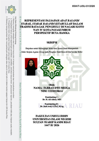FARRAS DWI MEIGA (2026) REPRESENTASI FALSAFAH ADAT BASANDI SYARAK, SYARAK BASANDI KITABULLAH DALAM TRADISI BATAGAK PENGHULU DI NAGARI KOTO NAN IV KOTA PAYAKUMBUH PERSPEKTIF BUYA HAMKA. Skripsi thesis, UNIVERSITAS ISLAM NEGERI SULTAN SYARIF KASIM RIAU.