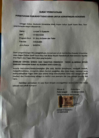 JUNIZAL TRI SYAPUTRA (2026) KORELASI ANTARA GHIBAH DAN TABAYYUN PERSPEKTIF TAFSIR AL-MISBAH (STUDI ANALISIS TERHADAP SURAT AL-HUJURAT AYAT 6 DAN 12). Skripsi thesis, UNIVERSITAS ISLAM NEGERI SULTAN SYARIF KASIM RIAU.