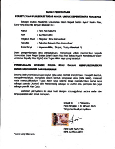 -, FANI ADE SAPUTRA (2026) PENGELOLAAN WEBSITE POLDA RIAU DALAM MEMPUBLIKASIKAN INFORMASI HUKUM DAN KEAMANAN. Skripsi thesis, Uin Sultan Syarif Kasim Riau.