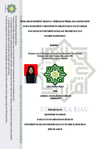 PENGARUH DOMPET DIGITAL TERHADAP PERILAKU KONSUMTIF PADA MAHASISWA EKONOMI SYARIAH FAKULTAS SYARIAH DAN HUKUM UNIVERSITAS ISLAM NEGERI SULTAN SYARIF KASIM RIAU