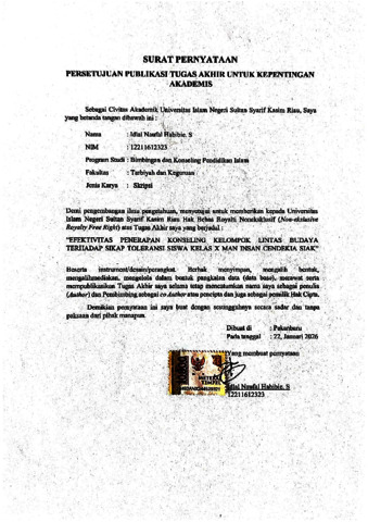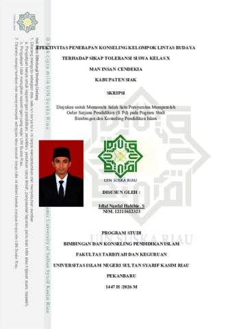 IDLAL NAUFAL HABIBIE. S, - (2026) EFEKTIVITAS PENERAPAN KONSELING KELOMPOK LINTAS BUDAYA TERHADAP SIKAP TOLERANSI SISWA KELAS X MAN INSAN CENDEKIA KABUPATEN SIAK. Skripsi thesis, Universitas Islam Negeri Sultan Syarif Kasim Riau.