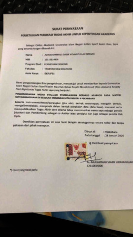 LEH ALI MUHAMMAD SYARIF HIDAYATULLAH SIREGAR, - (2026) PENGEMBANGAN MEDIA EVALUASI PEMBELAJARAN BERBASIS NEARPOD PADA MATERI KETENAGAKERJAAN DI SEKOLAH MENENGAH ATAS NEGERI 4 PEKANBARU. Skripsi thesis, UNIVERSITAS ISLAM NEGERI SULTAN SYARIF KASIM RIAU.
