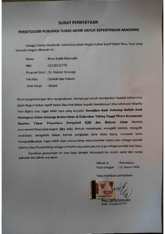 BENY SYAFIK NAJMUDIN, - (2026) KEWAJIBAN AYAH TERHADAP NAFKAH ANAK PEREMPUAN DALAM KELUARGA BROKEN HOME DI KELURAHAN TEBING TINGGI OKURA KECAMATAN RUMBAI TIMUR PEKANBARU PERSPEKTIF KHI DAN HUKUM ISLAM. Skripsi thesis, UNIVERSITAS ISLAM NEGERI SULTAN SYARIF KASIM RIAU.