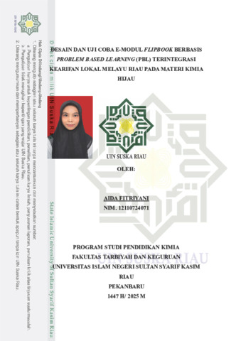 ABSTRAK Aida Fitriyani (2025): Desain dan Uji Coba E-Modul Flipbook Berbasis Problem Based Learning(PBL) Terintegrasi Kearifan Lokal Melayu Riau Pada Materi Kimia Hijau Penelitian ini dilatarbelakangi oleh rendahnya pemahaman siswa terhadap materi kimia hijau yang disebabkan oleh minimnya pembelajaran yang berbasis pemecahan masalah, selain itu pembelajaran yang diterapkan juga belum terintegrasi pada kehidupan sehari-hari. Penelitian ini bertujuan mengembangkan media e-modul berbasis problem based learning(PBL) yang terintegrasi kearifan lokal Melayu Riau yang valid dan praktis untuk pembelajaran kimia. Model yang digunakan yaitu Design and Development Research (DDR) yang terdiri dari 4 tahapan yaitu analisis (analysis), desain (design), pengembangan (development) dan evaluasi (evaluation). Teknik analisis data yang digunakan yaitu analisis kualitatif dan kuantitatif dengan teknik pengumpulan data menggunakan angket dan wawancara. Hasil penelitian mendapatkan nilai oleh validator ahli media dan ahli materi pembelajaran berturut-turut sebesar 98,33% dan 96,87% dengan kriteria sangat valid. Uji praktikalitas oleh guru sebesar 92,85% dengan kriteria sangat praktis dan uji respon peserta didik sebesar 89,79% dengan kriteria sangat baik. Dengan demikian, media e-modul ini dinilai sangat valid dan praktis sebagai bahan ajar kimia. Kata Kunci: E-Modul, Kimia Hijau, Kearifan Lokal, Media Pembelajaran, DDR