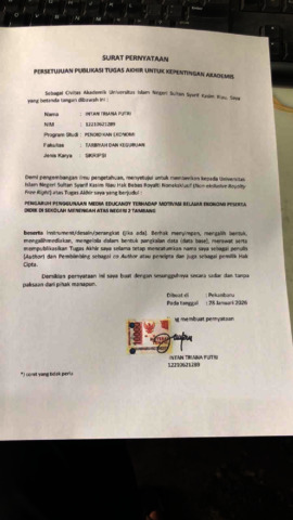 INTAN TRIANA PUTRI, - (2026) PENGARUH PENGGUNAAN MEDIA EDUCANDY TERHADAP MOTIVASI BELAJAR EKONOMI PESERTA DIDIK DI SEKOLAH MENENGAH ATAS NEGERI 2 TAMBANG. Skripsi thesis, UNIVERSITAS ISLAM NEGERI SULTAN SYARIF KASIM RIAU.