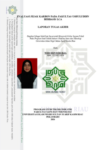 EVALUASI JEJAK KARBON PADA FAKULTAS USHULUDDIN BERBASIS LCA WIDI MONTI RESKIA 12250221079 Program Studi Teknik Industri Fakultas Sains dan Teknologi Universitas Islam Negeri Sultan Syarif Kasim Riau Jl. Soebrantas KM.18 No.155 Pekanbaru ABSTRAK Aktivitas di lingkungan perguruan tinggi berkontribusi terhadap peningkatan emisi karbon, terutama dari transportasi dan konsumsi energi listrik. Penelitian ini bertujuan untuk menghitung jejak karbon dosen dan mahasiswa Fakultas Ushuluddin Universitas Islam Negeri Sultan Syarif Kasim Riau, mengidentifikasi faktor utama penyumbang emisi karbon, serta merumuskan strategi pengurangan emisi. Metode yang digunakan adalah Life Cycle Assessment (LCA) dengan bantuan perangkat lunak SimaPro 7.1. Ruang lingkup penelitian dibatasi pada aktivitas transportasi dari rumah ke kampus dan sebaliknya serta konsumsi energi listrik selama perkuliahan dalam satu semester. Data diperoleh melalui observasi, wawancara, dan kuesioner. Hasil penelitian menunjukkan bahwa konsumsi energi listrik merupakan penyumbang emisi karbon terbesar, terutama dari penggunaan AC, lampu, dan perangkat elektronik di ruang perkuliahan, sedangkan transportasi memberikan kontribusi lebih kecil. Berdasarkan hasil analisis, disusun strategi pengurangan emisi menggunakan metode Impact Effort Matrix yang berfokus pada efisiensi penggunaan listrik, pengendalian perangkat elektronik, dan penerapan kebiasaan hemat energi. Penelitian ini diharapkan dapat mendukung penerapan konsep green campus di Fakultas Ushuluddin UIN Suska Riau. Kata kunci: jejak karbon, Life Cycle Assessment, konsumsi listrik, transportasi, perguruan tinggi.