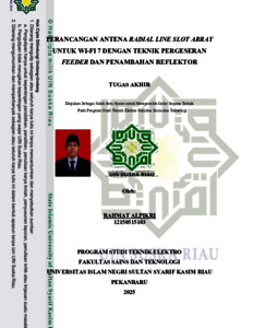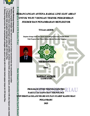RAHMAT ALPIKRI, - (2026) PERANCANGAN ANTENA RADIAL LINE SLOT ARRAY UNTUK WI-FI 7 DENGAN TEKNIK PERGESERAN FEEDER DAN PENAMBAHAN REFLEKTOR. Skripsi thesis, UNIVERSITAS ISLAM NEGERI SULTAN SYARIF KASIM RIAU.