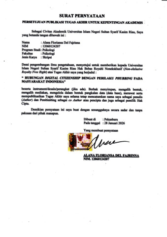 RICCA ANGREINI MUNTHE, - (2026) HUBUNGAN DIGITAL CITIZENSHIP DENGAN PERILAKU PHUBBING PADA MASYARAKAT INDONESIA. Skripsi thesis, Universitas Islam Negeri Sultan Syarif Kasim Riau.