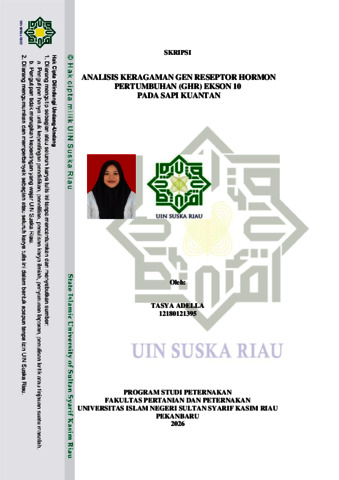 TASYA ADELLA, - (2026) ANALISIS KERAGAMAN GEN RESEPTOR HORMON PERTUMBUHAN (GHR) EKSON 10 PADA SAPI KUANTAN. Skripsi thesis, UNIVERSITAS ISLAM NEGERI SULTAN SYARIF KASIM RIAU.