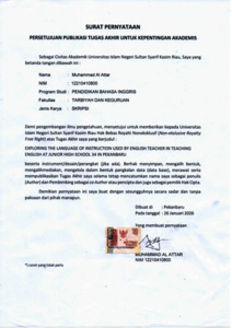 | Divisions: | Fakultas Tarbiyah dan Keguruan > Pendidikan Bahasa Inggris | ||||||||