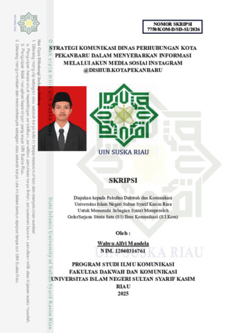 WAHYU ALFRI MANDELA (2026) STRATEGI KOMUNIKASI DINAS PERHUBUNGAN KOTA PEKANBARU DALAM MENYEBARKAN INFORMASI MELALUI AKUN MEDIA SOSIAl INSTAGRAM @DISHUB.KOTAPEKANBARU. Skripsi thesis, UNIVERSITAS ISLAM NEGERI SULTAN SYARIF KASIM RIAU.