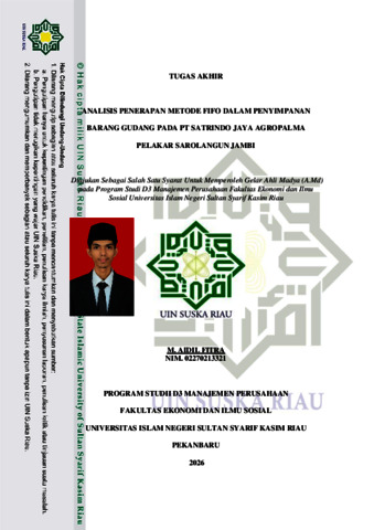 M. AIDIL FITRA (2026) ANALISIS PENERAPAN METODE FIFO DALAM PENYIMPANAN BARANG GUDANG PADA PT SATRINDO JAYA AGROPALMA PELAKAR SAROLANGUN JAMBI. Laporan thesis, Universitas Islam Negeri Sultan Syarif Kasim.