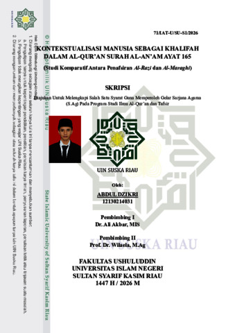 ABDUL DZIKRI, - (2026) KONTEKSTUALISASI MANUSIA SEBAGAI KHALIFAH DALAM AL-QUR’AN SURAH AL-AN’AM AYAT 165 (Studi Komparatif Antara Penafsiran Al-Razi dan Al-Maraghi). Skripsi thesis, UNIVERSITAS ISLAM NEGERI SULTAN SYARIF KASIM RIAU.