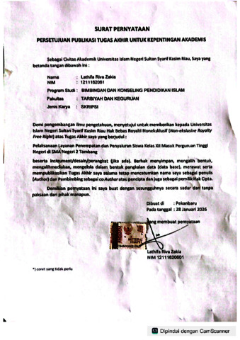 LATHIFA RIVA ZAKIA, - (2026) PELAKSANAAN LAYANAN PENEMPATAN DAN PENYALURAN SISWA KELAS XII UNTUK MASUK PERGURUAN TINGGI NEGERI DI SMA NEGERI 2 TAMBANG. Skripsi thesis, UNIVERSITAS ISLAM NEGERI SULTAN SYARIF KASIM RIAU.