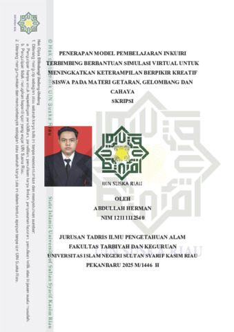 vii ABSTRAK Abdullah Herman (2025) : Penerapan Model Pembelajaran Inkuiri Terbimbing Berbantuan Simulasi Virtual Untuk Meningkatkan Keterampilan Berpikir Kreatif Siswa Pada Materi Getaran, Gelombang Dan Cahaya. Penelitian ini bertujuan untuk mengetahui peningkatan keterampilan berpikir kreatif siswa melalui penerapan model pembelajaran inkuiri terbimbing berbantuan simulasi virtual pada materi getaran, gelombang, dan cahaya. Penelitian ini menggunakan metode quasi experiment dengan desain pretest–posttest control group design. Populasi penelitian adalah seluruh siswa kelas VIII MTs Nurul Yaqin Pekanbaru yang berjumlah 40 siswa. Sampel dipilih menggunakan teknik sampling jenuh, sehingga diperoleh kelas VIII B sebagai kelas eksperimen yang terdiri dari 20 siswa dan kelas VIII A sebagai kelas kontrol yang terdiri dari 20 siswa. Kelas eksperimen diberikan perlakuan berupa pembelajaran inkuiri terbimbing berbantuan simulasi virtual, sedangkan kelas kontrol menggunakan model pembelajaran konvensional. Pengumpulan data dilakukan melalui pemberian pretest dan posttest untuk mengukur keterampilan berpikir kreatif siswa. Data dianalisis menggunakan uji normalitas, uji homogenitas, uji Independent Sample t-Test, serta uji N-Gain dengan bantuan program SPSS versi 25. Hasil analisis menunjukkan nilai signifikansi 0,00 < 0,05, yang menandakan terdapat perbedaan peningkatan keterampilan berpikir kreatif yang signifikan antara kelas eksperimen dan kelas kontrol. Nilai persentase N-Gain pada kelas eksperimen sebesar 77,92% dengan kategori tinggi, sedangkan kelas kontrol memperoleh nilai N-Gain sebesar 39,22% dengan kategori sedang. Hasil tersebut menunjukkan bahwa keterampilan berpikir kreatif siswa pada kelas eksperimen lebih tinggi dibandingkan kelas kontrol. Dengan demikian dapat disimpulkan bahwa Ha diterima dan H₀ ditolak, yang berarti penerapan model pembelajaran inkuiri terbimbing berbantuan simulasi virtual berpengaruh signifikan dalam meningkatkan keterampilan berpikir kreatif siswa. Kata kunci: inkuiri terbimbing, simulasi virtual, keterampilan berpikir kreatif, pembelajaran IPA.