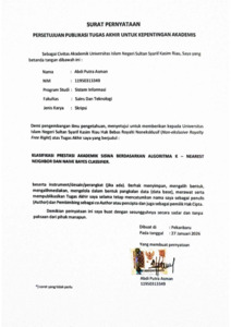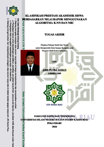 ABDI PUTRA ASMAN, - (2026) KLASIFIKASI PRESTASI AKADEMIK SISWA BERDASARKAN ALGORITMA K-NN DAN NBC. Skripsi thesis, UNIVERSITAS ISLAM NEGERI SULTAN SYARIF KASIM RIAU.