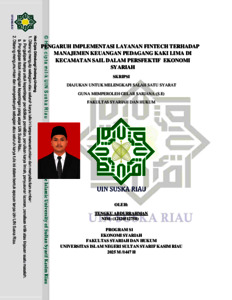 Tengku Abdurrahman, - (2026) PENGARUH IMPLEMENTASI LAYANAN FINTECH TERHADAP MANAJEMEN KEUANGAN PEDAGANG KAKI LIMA DI KECAMATAN SAIL DALAM PERSFEKTIF EKONOMI SYARIAH. Skripsi thesis, Universitas Islam Negeri Sultan Syarif Kasim Riau.