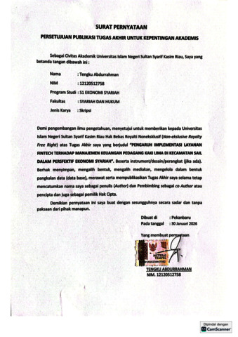 Pernyataan - TENGKU ABDURRAHMAN Ekonomi Syariah S1.pdf - Published Version Download (863kB) | Preview |