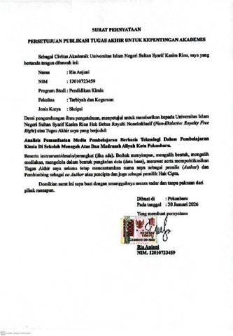 PERNYATAAN - RIA ANJANI Pendidikan Kimia.pdf - Published Version