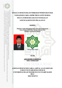 ADE ROSIDI NURISWAN, - (2026) TINJAUAN HUKUM ISLAM TERHADAP PEMENUHAN HAK NAFKAH KELUARGA SOPIR TRUK SAWIT DI DESA MULYA SUBUR KECAMATAN PANGKALAN LESUNG KABUPATEN PELALAWAN. Skripsi thesis, UNIVERSITAS ISLAM NEGERI SULTAN SYARIF KASIM RIAU.