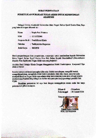 PERNYATAAN - NOPIA PUTRI PRATAMA PENDIDIKAN KIMIA.pdf - Published Version Download (117kB) | Preview |