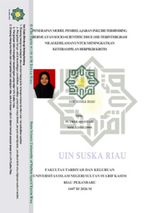 PUTRI KAPUSTARI, - (2026) PENERAPAN MODEL PEMBELAJARAN INKUIRI TERBIMBING BERMUATAN SOCIO-SCIENTIFIC ISSUE (SSI) TERINTERGRASI NILAI KEISLAMAN UNTUK MENINGKATKAN KETERAMPILAN BERPIKIR KRITIS. Skripsi thesis, Universitas Islam Negeri Sultan Syarif Kasim Riau.