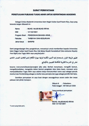 | Divisions: | Fakultas Tarbiyah dan Keguruan > Pendidikan Bahasa Arab | ||||||||