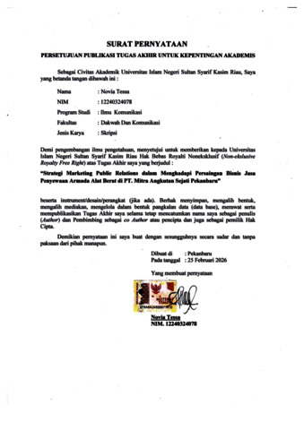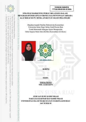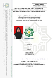 NOVIA TESSA, - (2026) STRATEGI MARKETING PUBLIC RELATIONS DALAM MENGHADAPI PERSAINGAN BISNIS JASA PENYEWAAN ARMADA ALAT BERAT DI PT. MITRA ANGKUTAN SEJATI PEKANBARU. Skripsi thesis, Universitas Islam Negeri Sultan Syarif Kasim Riau.