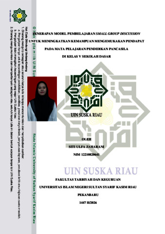 SITI ULFA ZAHARANI, - (2026) PENERAPAN MODEL PEMBELAJARAN SMALL GROUP DISCUSSION UNTUK MENINGKATKAN KEMAMPUAN MENGEMUKAKAN PENDAPAT PADA MATA PELAJARAN PENDIDIKAN PANCASILA DI KELAS V SEKOLAH DASAR. Skripsi thesis, Universitas Islam Negeri Sultan Syarif Kasim Riau.