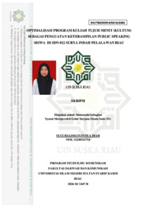 SUCI HALIMATUSYSYA DIAH, - (2026) OPTIMALISASI PROGRAM KULIAH TUJUH MENIT (KULTUM) SEBAGAI PENGUATAN KETERAMPILAN PUBLIC SPEAKING SISWA DI SDN 012 SURYA INDAH PELALAWAN RIAU. Skripsi thesis, Universitas Islam Negeri Sultan Syarif Kasim Riau.