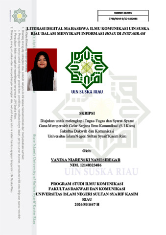 VANESA NIARENSKI NAMI SIREGAR, - (2026) LITERASI DIGITAL MAHASISWA ILMU KOMUNIKASI UIN SUSKA RIAU DALAM MENYIKAPI INFORMASI HOAX DI INSTAGRAM. Skripsi thesis, Universitas Islam Negeri Sultan Syarif Kasim Riau.