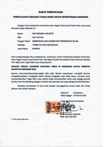 NUR IMANDA AGUSTRI, - (2026) TINGKAT ACADEMIC BUOYANCY SISWA DI MADRASAH ALIYAH TARBIYAH ISLAMIYAH INDRAGIRI HILIR. Skripsi thesis, Universitas Islam Negeri Sultan Syarif Kasim Riau.