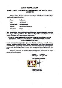 FERDIANSYAH, - (2026) PRAKTIK KOMUNIKASI INTERNAL DALAM KONTEKS BUDAYA KERJA BIROKRASI: STUDI KUALITATIF PADA ASN DI BIRO UMUM KANTOR GUBERNUR PROVINSI RIAU. Skripsi thesis, Universitas Islam Negeri Sultan Syarif Kasim Riau.