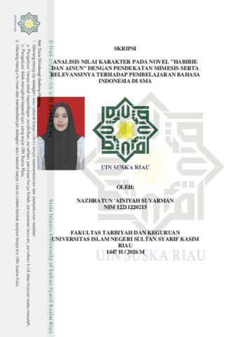 ABSTRAK Penelitian ini dilatarbelakangi oleh pentingnya karakter yang harus ditanamkan kepada siswa melalui apresiasi karya sastra sebagai cerminan realitas kehidupan. Sastra bukan sekedar hiburan, melainkan media pendidikan nilai moral dan sosial yang relevan dengan perkembangan psikologis siswa di tingkat menengah atas. Penelitian ini bertujuan untuk mendeskripsikan jenisjenis mimesis yang terdapat dalam novel “Habibie dan Ainun” karya B.J. Habibie dan relevansinya terhadap pembelajaran bahasa Indonesia di SMA. Jenis-jenis mimesis yang diteliti adalah mimesis realitas, mimesis psikologis, mimesis moral, dan mimesis sosial. Penelitian ini menggunakan metode deskriptif kualitatif dengan menggunakan teknik pengumpulan data yaitu teknik baca dan catat. Setelah data terkumpul kemudian data dianalisis dengan menggunakan teknik analisis data (Content Analysis). Setelah data dianalisis diperoleh bahwa jenis-jenis mimesis ada 4. Yaitu mimesis realitas ditemukan 47 data, mimesis psikologis ditemukan 34 data, mimesis moral ditemukan 37 data, dan mimesis sosial ditemukan 19 data. Adapun relevansi novel Habibie dan Ainun dengan pembelajaran bahasa Indonesia di SMA pada materi sastra KD 3.9 tentang menganalisis isi novel di kelas XII sangat signifikan, Novel Habibie dan Ainun ini dapat digunakan untuk menanamkan nilai-nilai pendidikan karakter melalui pendekatan mimesis agar menjadi pembentukan karakter bangsa yang baik. Kata Kunci: Mimesis, Novel, Nilai Karakter, Pembelajaran Bahasa Indonesia, Novel Nazharatun 'Ainiyah Suyarman (2026) : Analisis Nilai Karakter Pada Novel "Habibie dan Ainun" Dengan Pendekatan Mimesis Serta Relevansinya Terhadap Pembelajaran Bahasa Indonesia Di SMA
