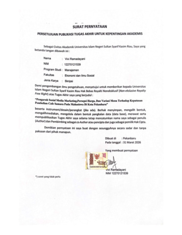 VIVI RAMADAYANI, - (2026) PENGARUH SOSIAL MEDIA MARKETING, PERSEPSI HARGA, DAN VARIASI MENU TERHADAP KEPUTUSAN PEMBELIAN CAFE SAMARA PADA MAHASISWA DI KOTA PEKANBARU. Skripsi thesis, Universitas Islam Negeri Sultan Syarif Kasim Riau.