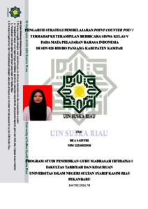 ABSTRAK Dea Safitri (2026) : Pengaruh Strategi Pembelajaran Point Counter Point Terhadap Keterampilan Berbicara Siswa Kelas V Pada Mata Pelajaran Bahasa Indonesia di SDN 028 Rimbo Panjang Kabupaten Kampar Penelitian ini bertujuan untuk mengetahui pengaruh strategi pembelajaran point counter point terhadap keterampilan berbicara siswa pada mata pelajaran Bahasa Indonesia kelas V SDN 028 Rimbo Panjang. Keterampilan berbicara merupakan salah satu keterampilan berbahasa produktif yang penting dalam pembelajaran Bahasa Indonesia di sekolah dasar. Namun, berdasarkan hasil observasi awal, keterampilan berbicara siswa belum berkembang secara optimal, khususnya pada aspek pengucapan yang jelas, intonasi yang variatif, pilihan kata yang tepat, struktur kalimat yang benar dan kelancaran berbicara. Oleh karena itu, diperlukan strategi yang dapat mendorong keaktifan dan melatih siswa berbicara secara langsung. Penelitian ini menggunakan pendekatan quasi eksperimen dengan desain posttest only control design. Sampel penelitian terdiri atas kelas VA sebagai kelas eksperimen dan kelas VB sebagai kelas kontrol. Pengumpulan data dilakukan melalui tes unjuk kerja dengan instrumen yang telah diuji validitas dan memiliki nilai reliabilitas sebesar (0,767). Data dianalisis menggunakan uji normalitas, homogenitas, dan Mann whitney U. Hasil penelitian menunjukkan nilai rata-rata skor posttest kelas eksperimen sebesar 82,75, lebih tinggi dibandingkan kelas kontrol sebesar 60,66. Hasil uji hipotesis menggunakan uji Mann-Whitney U menunjukan nilai Asymp. Sig. (2-tailed) = 0,000 < 0,05, sehingga Ho ditolak dan Ha diterima. Kebaruan penelitian ini terletak pada fokus penggunaan strategi pembelajaran point counter point terhadap keterampilan berbicara siswa kelas V sekolah dasar secara langsung tanpa dikombinasikan dengan strategi lain. Dengan demikian, dapat disimpulkan bahwa strategi point counter point berpengaruh signifikan terhadap keterampilan berbicara siswa kelas V SDN 028 Rimbo Panjang. Kata Kunci: Point Counter Point, Keterampilan Berbicara, Pembelajaran Bahasa Indonesia , Quasi Eksperimen, Siswa Sekolah Dasar