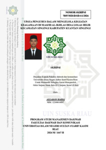 AZZARON HAFIQ, - (2026) UPAYA PENGURUS DALAM MENGELOLA KEGIATAN KEAGAMAAN DI MASJID AL-IKHLAS DESA LOGAS HILIR KECAMATAN SINGINGI KABUPATEN KUANTAN SINGINGI. Skripsi thesis, Universitas Islam Negeri Sultan Syarif Kasim.