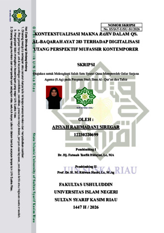 AISYAH RAHMADANI SIREGAR, - (2026) KONTEKSTUALISASI MAKNA RAHN DALAM QS. AL-BAQARAH AYAT 283 TERHADAP DIGITALISASI UTANG PERSPEKTIF MUFASSIR KONTEMPORER. Skripsi thesis, UNIVERSITAS ISLAM NEGERI SULTAN SYARIF KASIM RIAU.