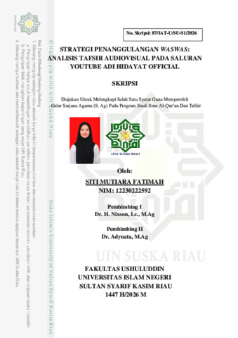 SITI MUTIARA FATIMAH, - (2026) STRATEGI PENANGGULANGAN WASWAS: ANALISIS TAFSIR AUDIOVISUAL PADA SALURAN YOUTUBE ADI HIDAYAT OFFICIAL. Skripsi thesis, UNIVERSITAS ISLAM NEGERI SULTAN SYARIF KASIM RIAU.